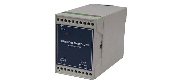 Instrument is High-Performance, 4-20mA Injector for Calibration of a process instrument or operating a device working on 4-20mA. Suitable for operating a Flow control valve, operating a VFD (Inverter) or calibrating a process controller or indicator. Device is DIN Rail mount with terminals for 1KΩ pot which can separately be mounted on front of a panel board. Varying the potentiometer can vary the output linearly from 4 to 20mA. Operates on 24V DC (230V AC Optional)